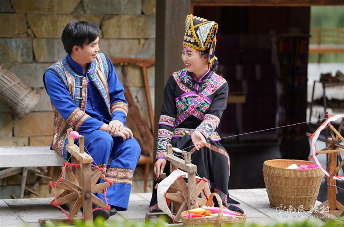 云南壯族主要聚居在文山州,人口114萬,民間的村寨大多依山傍水。壯族擅長種植水稻,有太陽崇拜和長老崇拜的風(fēng)俗,視銅鼓為重器,厚愛銀飾,善烹制五色花米飯,能歌善舞,熱情好客。進(jìn)入景區(qū)壯族村,迎面有祭祀龍王的龍柱,兩邊是先民繪制的天王崖畫和為紀(jì)念傳說洪水泛濫時幫助先民度過劫難而建的石葫蘆亭。祭祀玉皇大帝的昊天閣和傳說能驅(qū)邪納福的碩大銅鼓聳立在廣場兩側(cè)。桿欄式和麻欄式民居、壯族青年社交休憩的“情廊”、村...